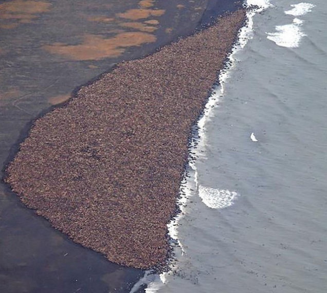 Таяние морского льда: около 35000 моржей собрались на берегу