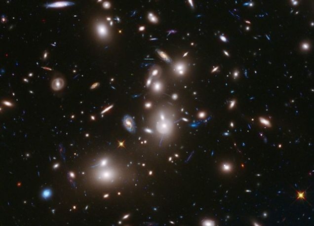 Используя мощнейший зум-объектив, Телескоп Хаббл в январе смог сделать эти фотографии скопления галактик Abell 2744.
