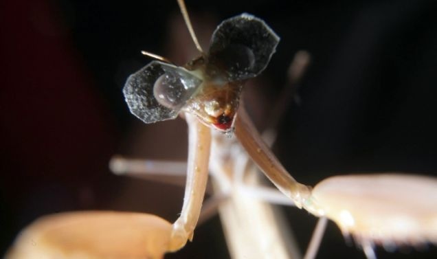 Ученые из университета Ньюкасла оснастили богомола парой самых маленьких в мире 3D-очков, чтобы лучше понять, как эти ловкие хищники воспринимают глубину.