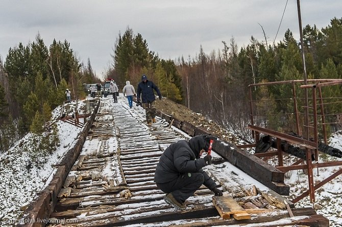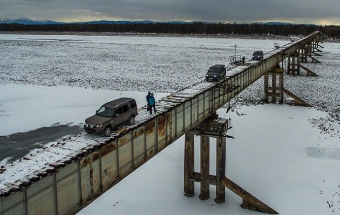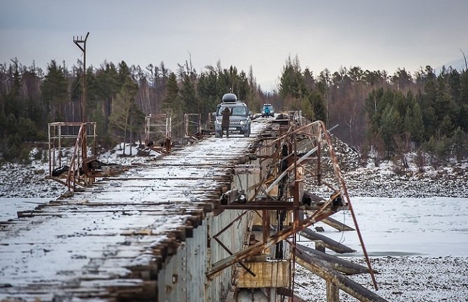 Уже 30 лет по Куандинскому мосту курсируют туда-сюда автомобили, а ведь конструкция так не была официально сдана в эксплуатацию. На основание моста просто уложены шпалы, которые практически не закреплены между собой. Очень часто во время движения машины шпалы «гуляют», а водителям по ходу приходится укладывать доски, чтобы закрыть образовавшиеся дыры.