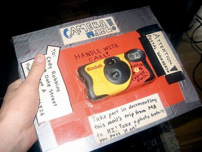 +5 Почтовая служба на западе (20 фото) Двое парней решили воплотить в жизнь довольно-таки интересный проект. Они запечатали фотоаппарат в такую упаковки и написали просьбу для всех работников почтовой службы, через которых будет проходить эта камера, сфотографироваться на нее. Проголосуйте за этот материал! +5