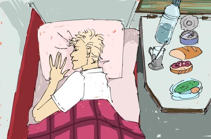 Так, по крайней мере, я сказал своей спутнице. Она показала мне жестом, что я сошел с ума, и отвернулась.? Эндрю Диксон, Великобритания: Я заметил, что, как только входишь в купе, тобой овладевает непреодолимое желание спать. Вероятно, причина этого — гипнотическое движение поезда, своего рода медленная и степенная тряска, похожая на танец толстого человека. Возможно, это также связано с тем, что в вагоне настолько натоплено, что это похоже на жизнь в сауне. Еда, сон, питье, снова сон. Словно я вернулся в детский сад. Джулия Манджони, Италия: Вы не едите обед или ужин, вы едите непрерывно. Еда — повод познакомиться с другими пассажирами, поэтому мне часто предлагали какую-нибудь пищу, например копченую рыбу. Однажды утром мой сосед по плацкарту сказал, что если я не пробовала омуля, то никогда не была на Байкале. Честно говоря, копченая рыба — не совсем то, чего мне хотелось в 7 утра, но оказалось вкусно.? Рори Смит, Великобритания: Честно говоря, мой настрой был бы лучше, если бы соседи по купе через два часа после посадки не достали сваренные вкрутую яйца и маринованные огурцы… А я просчитался, не взяв с собой нормальную еду и спустив наличку на вафли. <...> И вот я лежу на своем месте и чувствую, что меня кто-то толкает. Попутчица тянет мне миску с овощами, колбасой и хлебом и всем своим видом показывает, что я должен это съесть. Потом она достала кекс. <...> Я все съел, это было потрясающе. Поблагодарил женщину и показал, что мой живот полон. А она достала упаковку клубничных печенек. С помощью Google-переводчика я объяснил, что ей еще ехать дальше, а я наелся. Но она меня проигнорировала и положила печенье ко мне в сумку.